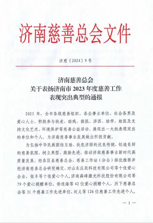 集團榮獲“濟南十佳愛心企業”榮譽稱號